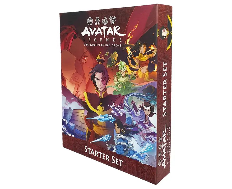 The Avatar Legends RPG Starter Set brings you and your friends into the beloved setting of Avatar Legends! This boxed set includes everything you need to get started playing Avatar Legends: The Roleplaying Game, portraying your own characters on action-packed escapades through the Four Nations! Weave tales of self-discovery and action with your team of friends, and work with legendary heroes like Fire Lord Zuko to bring balance to the world!