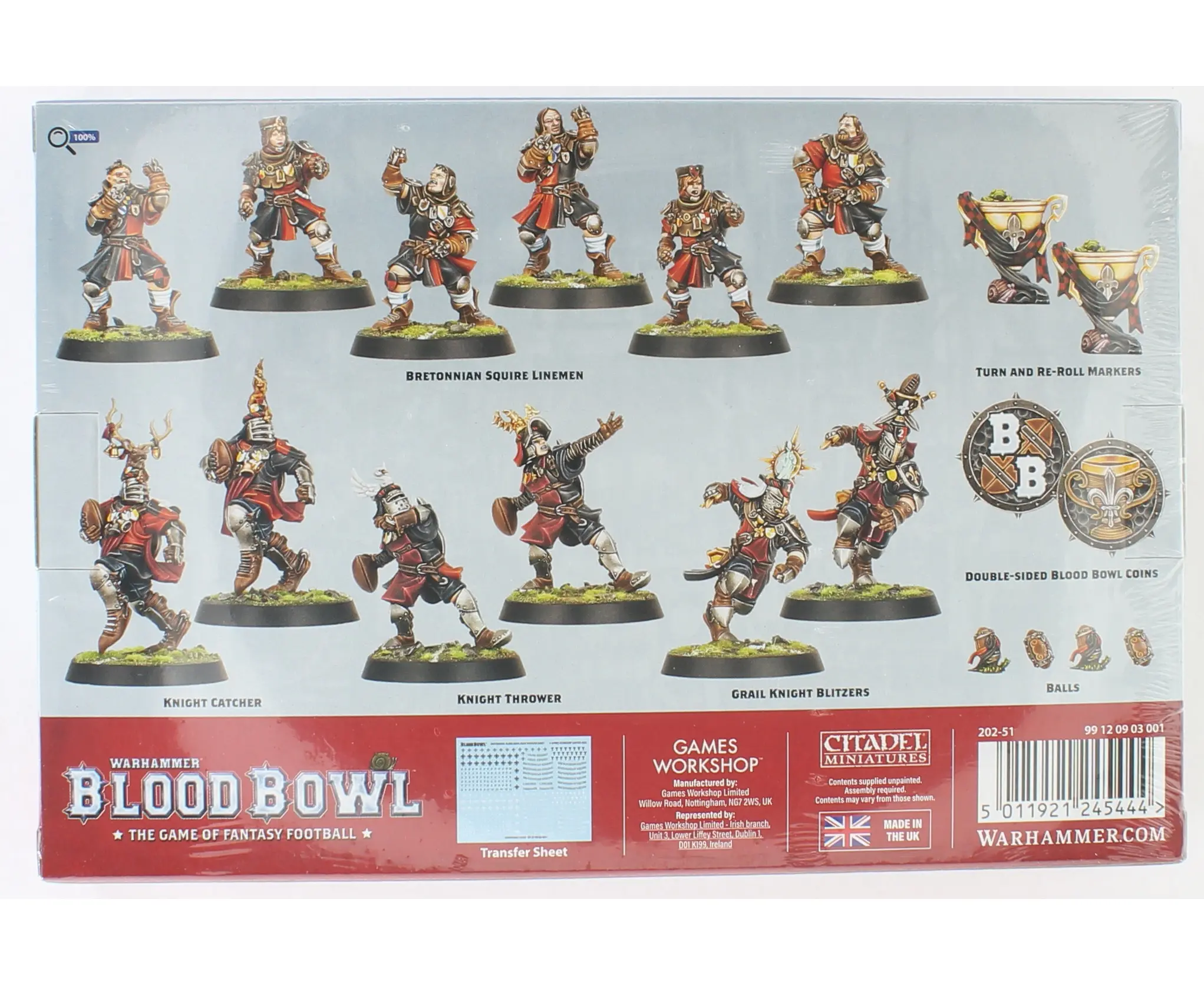 The nobles of Bretonnia charge onto the Blood Bowl pitch in full regalia, bringing their chivalric might and unshakable loyalty to the beautiful (and brutal) game. Backed by stalwart Squires and armoured Knights, these teams excel at smashing through defensive lines and storming their way to the end zone with noble determination. Each team set includes 12 multipart plastic players – six Bretonnian Squire Linemen, two Knight Catchers, two Knight Throwers, and two Grail Knight Blitzers – alongside two double-sided team coins, two Turn and Re-roll markers, and four footballs to keep the action flowing. The set also includes a Bretonnian Team transfer sheet boasting 320 individual transfers, perfect for giving your players the heraldic flair they deserve.