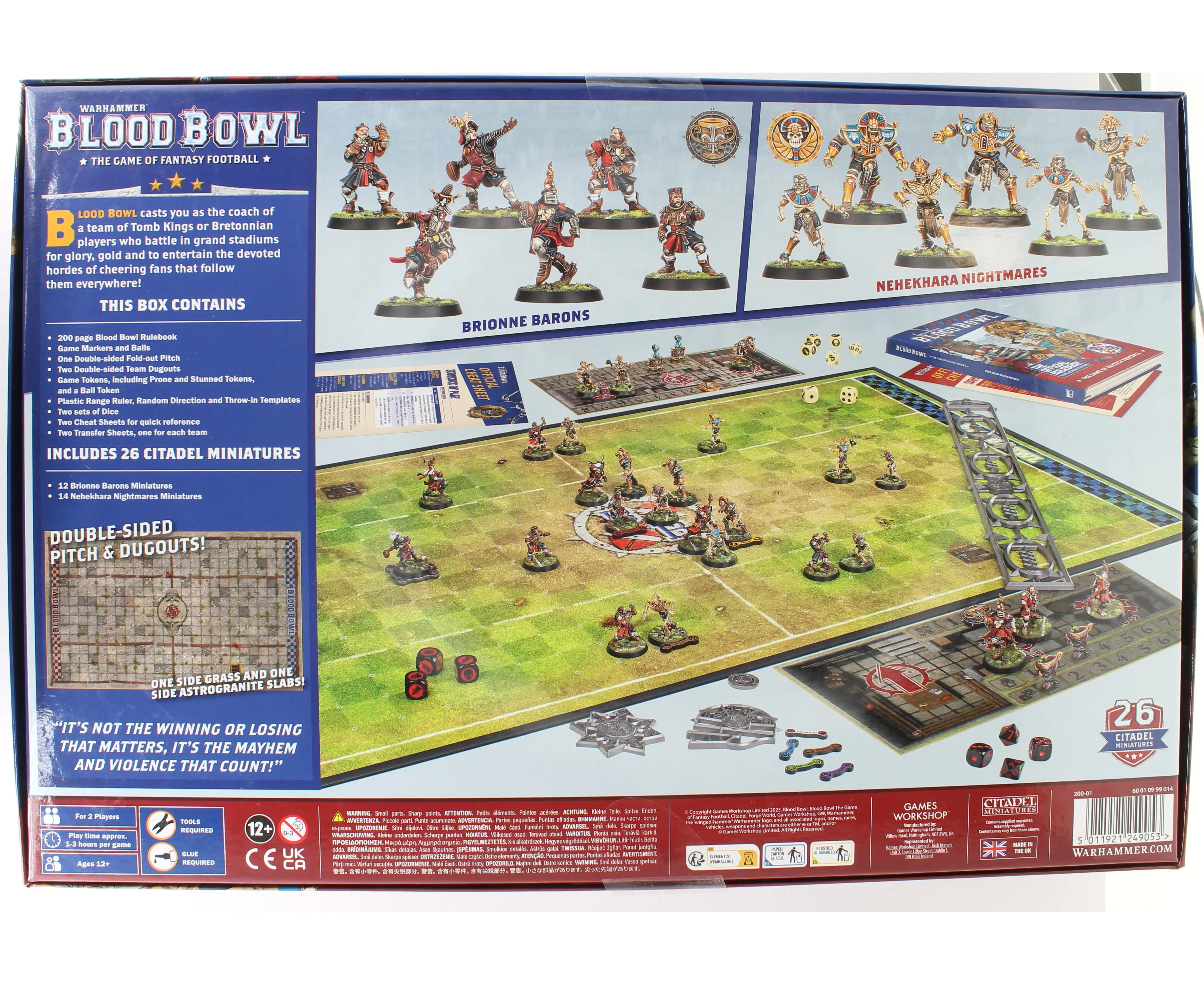 Kick off the next season of carnage in style with the new edition of Blood Bowl, an explosive, action-packed boxed set crammed with everything you need to dive straight into Games WorkshopÂ’s most violent sport! This ultimate starter set features two brand new teams straight from Bretonnia and the Tomb Kings, ready to clash in spectacular fashion.