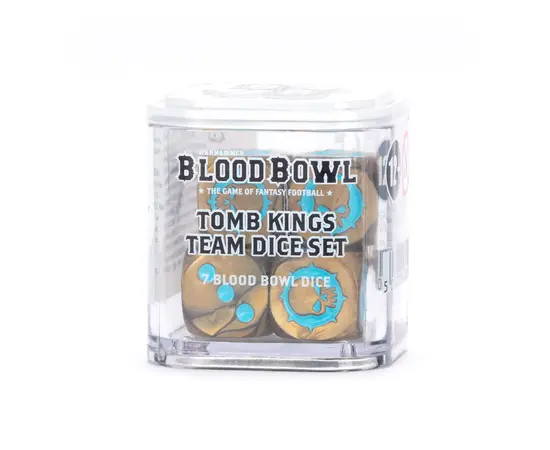 Show your team spirit in style with a set of themed Blood Bowl dice! Each pack includes seven custom dice – three 6-sided Block dice, two standard 6-sided dice, one 8-sided Scatter die, and one 16-sided die – everything you need to roll your way to glory. Tomb Kings of Khemri channel ancient majesty with gold-and-brown swirled dice, accented by turquoise pips and their regal icon on the six.