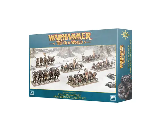 Unleash fury on the Mortal Realms with the Chaos Marauders Army Reinforcement Set, packed with everything you need to swell your Warriors of Chaos ranks. Inside this massive box, you'll find 40 brand-new Chaos Marauders, enough to muster four units of 10, each with full command options and a wealth of choices. Arm them with hand weapons and shields, devastating great weapons, or wild, swinging flails, and customize every warrior with a choice of two head options. You also get 10 Marauder Horsemen, buildable as two units of five with full command options, equipped with either spears and shields or brutal flails and 13 head options to keep your raiders looking unique. Rounding out the set are two Warriors of Chaos transfer sheets, each loaded with 246 decals.