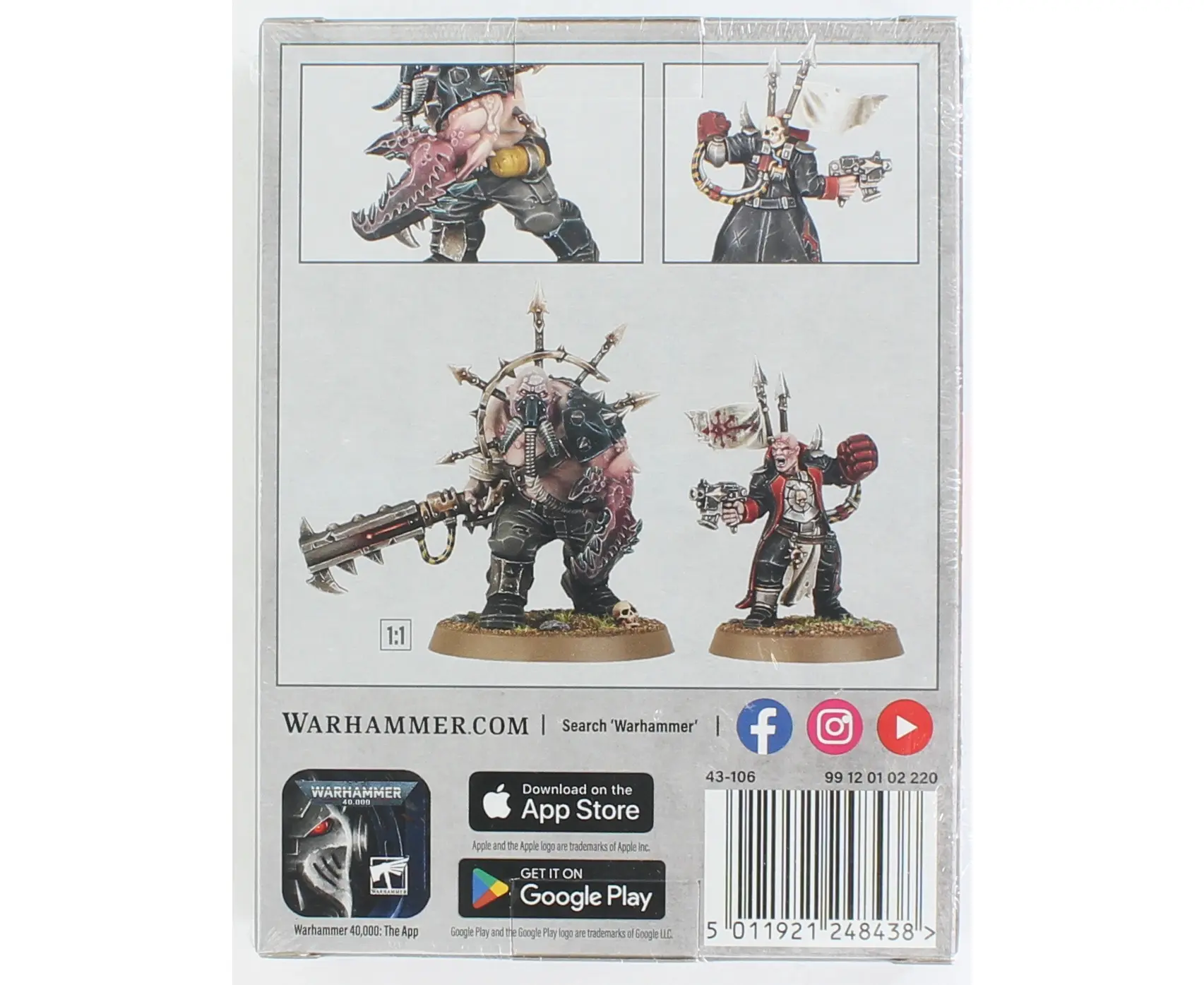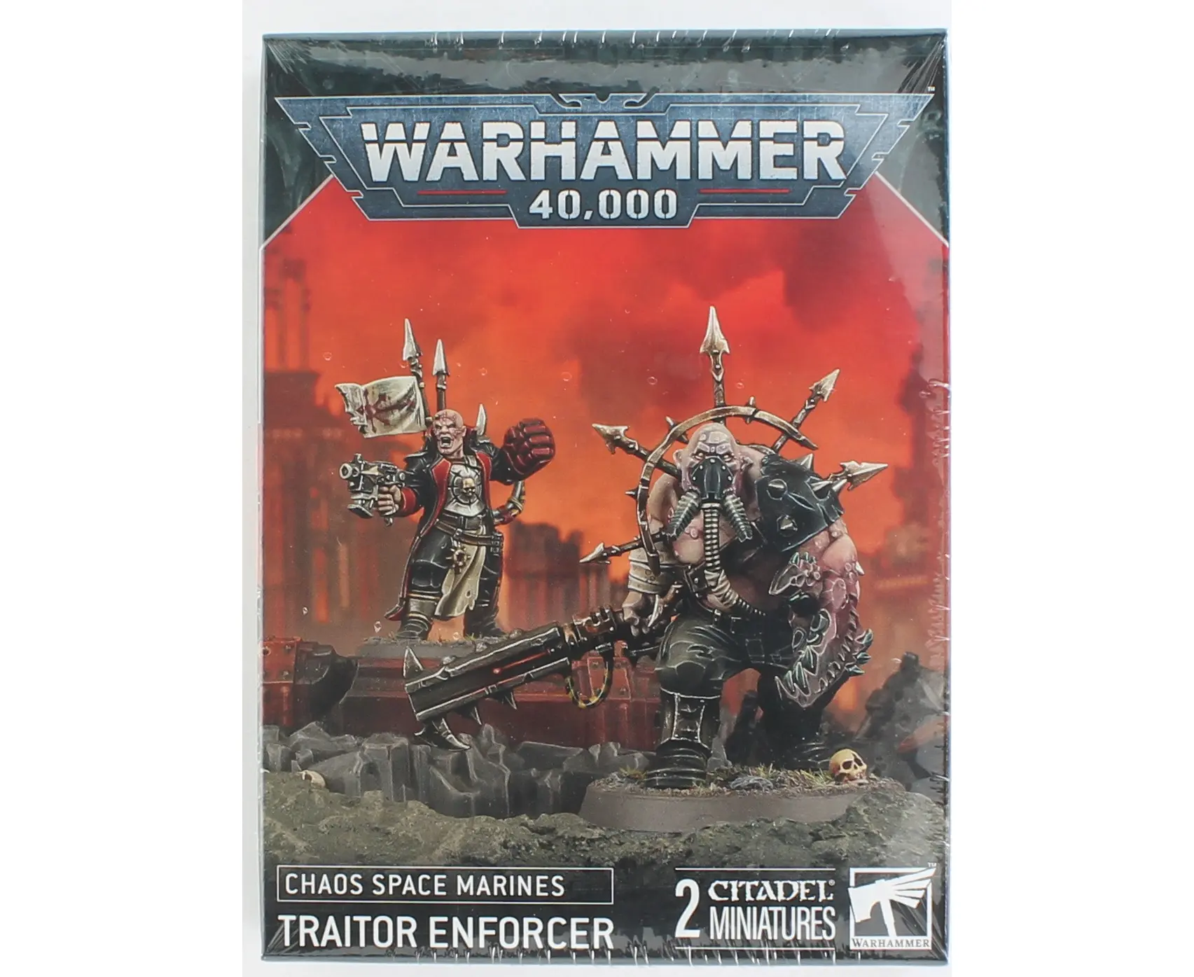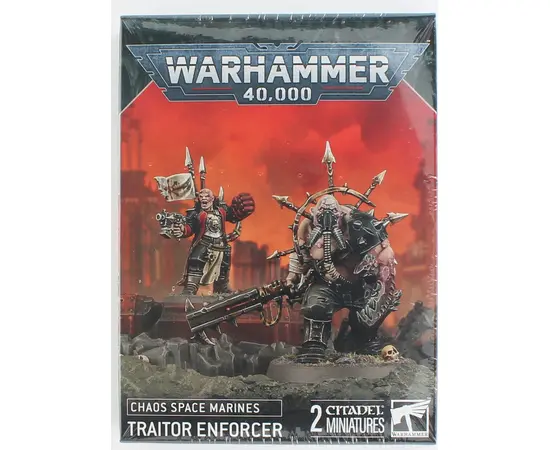 Enforcers are the vicious taskmasters of the Militarum Traitoris. They are ruthless tyrants whoÂ’ve clawed their way to power or fallen officers twisted by corruption. Many secure their authority by unleashing hulking Traitor Ogryns, using these savage brutes as intimidating shock troops and living battering rams to enforce their bloody rule. This multipart plastic kit builds a merciless Traitor Enforcer paired with a towering Traitor Ogryn, perfect for driving your Traitor Guardsmen forward in Chaos Space Marines armies for Warhammer 40,000. Armed for brutal close-quarters combat, this duo delivers serious punch to your frontline forces.