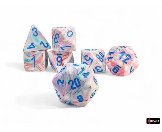Chessex Mega Dice Set of 7 - Festive Pop Art with Blue