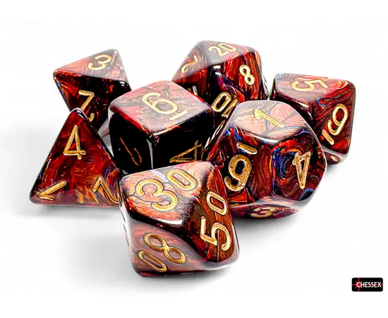 Chessex Mega Dice Set of 7 - Glitter Ruby with Gold
