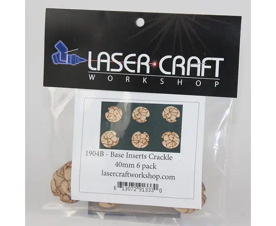 Base inserts with engraved chaotic pattern to simulate ice floes, lava fields, dried out mud, or other open broken ground. Simple and sturdy base inserts for 40mm recessed bases made from 3mm laser-cut MDF board. 6 per pack.