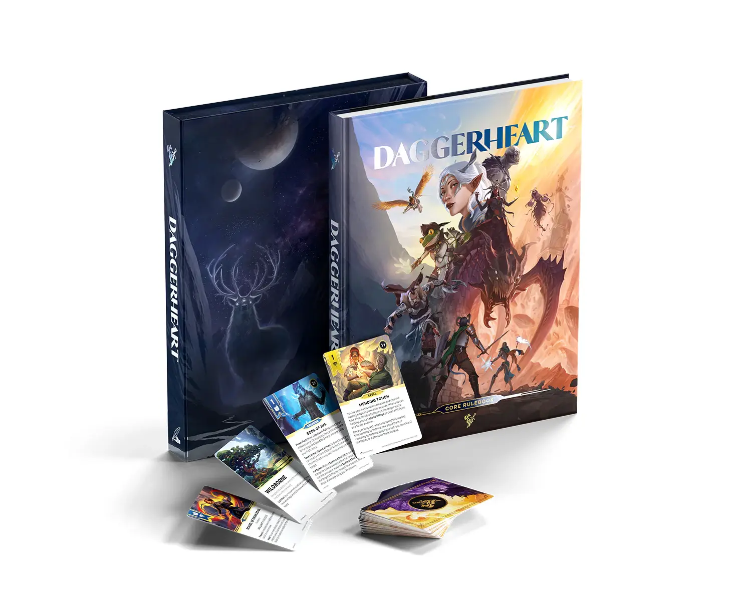Daggerheart is a tabletop roleplaying game of epic and heartfelt tales of adventure, tuned uniquely by your group for maximum fun at YOUR table. A perfect companion to storytellers of all kinds, the Daggerheart Core Set contains a hardcover rulebook and a box containing a rich set of cards for character customization.