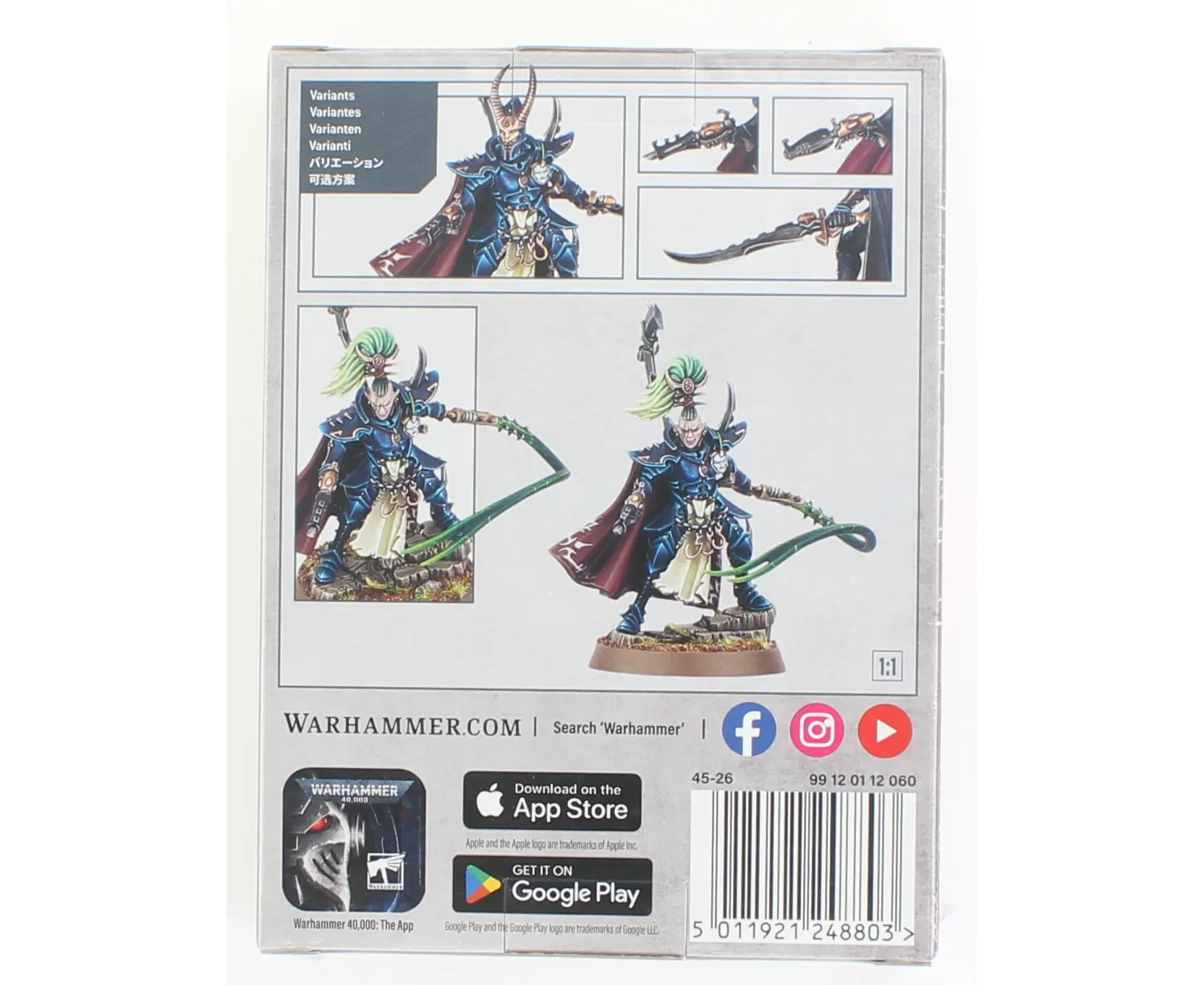 Command your kabal with ruthless precision in a vicious realspace raid led by the new multi-part plastic Archon, a master of cruelty and cunning, armed to dominate the battlefield. This highly customizable kit lets you craft your perfect overlord, featuring two torso options, two collars, and a wide range of weapon choices including a blast pistol, splinter pistol, or soul trap for the right arm, and an agoniser, huskblade, or master-crafted power weapon for the left. Top it all off with your choice of three distinctive heads to make your Archon your own.