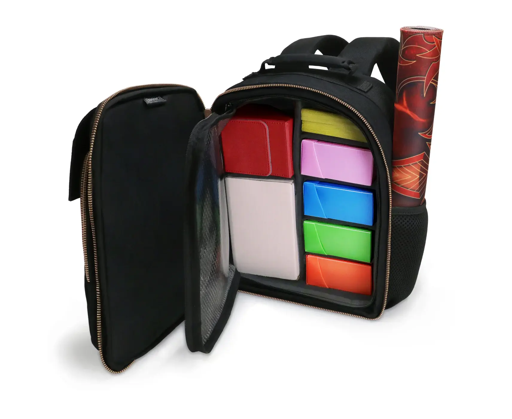 FRONT ACCESORY POCKET: The Front of the compact tcg backpack is designed to booster packs, pencils/pens, dice bag, top loader, mtg sleeves, mtg tokens and other tcg bag accessories