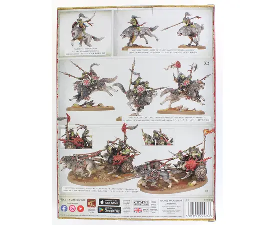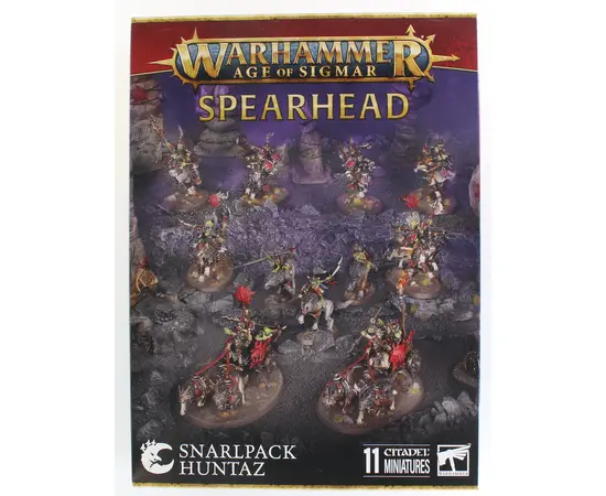 The Snarlpack Huntaz are a pack of speed-obsessed Gitmobs, forever chasing the strange creature they call the Glareface Frazzlegit and siphoning its wild energy into their jagged weapons. Swift and reckless, they crash into battle with more momentum than martial discipline.
