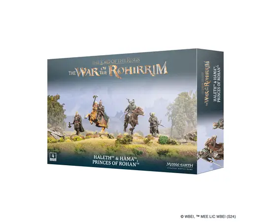 The Haleth & Háma, Princes of Rohan set includes both heroes in a plastic kit, featuring mounted and unmounted versions of each. The kit also offers the option to equip them with either bare heads or helmets.This kit contains 60 plastic components, 2x Citadel 40mm Round Hex Hole Bases, and 2x Citadel 25mm Round Bases. These miniatures are supplied unpainted and require assembly – we recommend using Citadel Colour Plastic Glue and Citadel Colour paints.These models are supplied unpainted and require assembly.