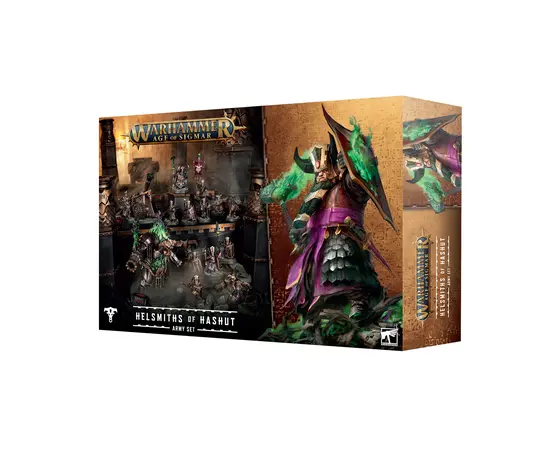 The Helsmiths of Hashut Army Set is your first step into this ruthless new faction. Inside youÂ’ll find 14 brand-new miniatures, ready to take the field immediately as the Helforge Host Spearhead. Command a mighty War Despot, lead a 10-strong Infernal Cohort with Hashutite Spears (plus hobgrot gong carrier), and unleash the raw power of two daemonfire-driven war machines: the Dominator Engine & the Tormentor Bombard.