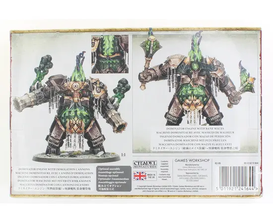 These towering, mechanised behemoths are forged in the image of the Bullfather himself, each one animated by a blazing core of tormented daemon-essence sealed within its furnace-heart. Those armed with bane maces thunder through enemy lines, crushing all before them beneath ensorcelled blows, while variants wielding immolation cannons spew torrents of daemonfire that spread with terrifying, supernatural speed. Each Dominator Engine includes customisation options such as two distinct stomach plates, a choice of two faceplates, two pairs of horns that can be mixed and matched, and fully poseable arms allowing you to make you Dominator Engine your own.