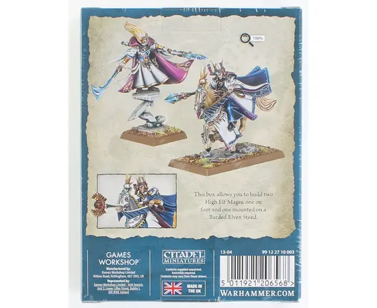 Harness the arcane might of Ulthuan with the unmatched elegance of High Elf sorcery! Gifted with agile minds and an innate affinity for magic, the High Elves wield devastating spells to shatter their foes—calling forth raging storms or weaving illusions that cripple entire armies. This versatile kit lets you build one High Elf Mage on foot and another mounted on a majestic barded Elven steed. With multiple buold options you’ll have everything you need to craft your perfect master of the mystical arts. These models are supplied unpainted and require assembly.