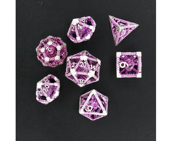 Hollow Metal Monster Pink w/Silver Set of 7 Dice