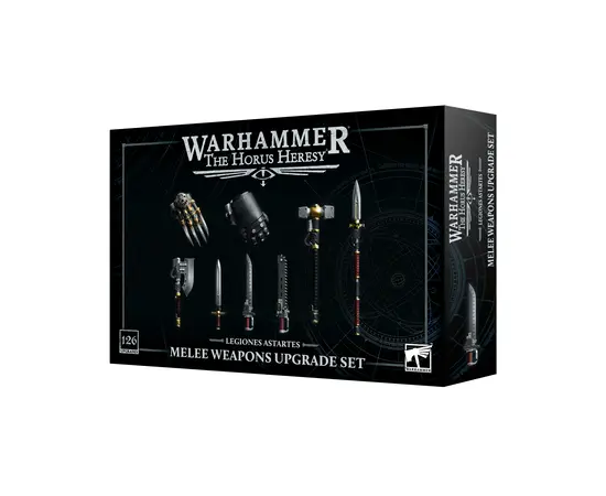 From charnabal sabres and chainswords to mighty thunder hammers and graceful power lances, the Melee Weapons Upgrade Set equips your Legiones Astartes with a full arsenal of close combat gear. This set includes two large, identical sprues packed with a variety of melee weapons, pistols, arms, hands, and heads.