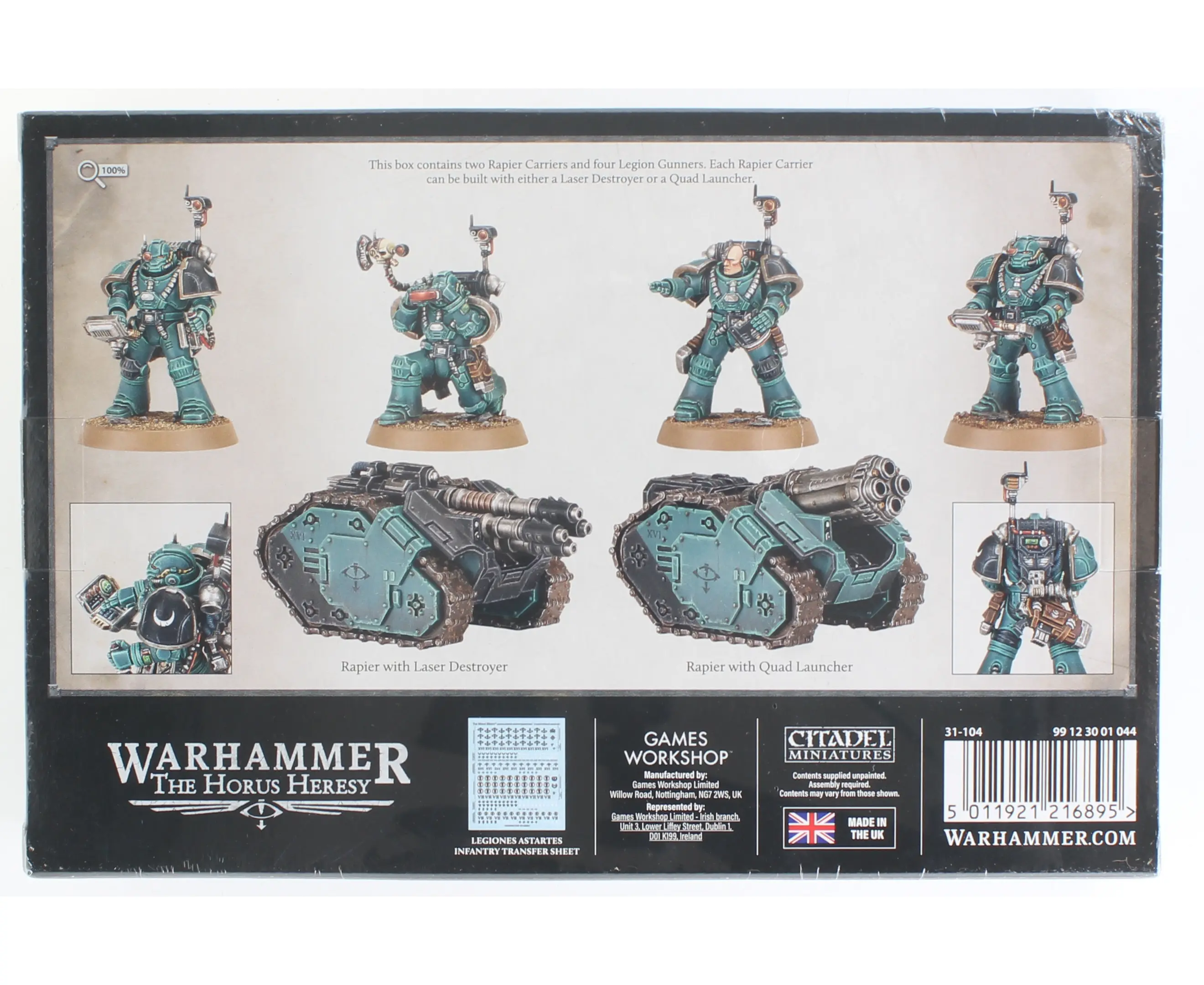 Unleash devastating support fire with the Rapier Laser Destroyer and Quad Launcher Battery, a versatile heavy weapons kit built for the brutal demands of the Horus Heresy.These two Rapiers can be armed with your choice of laser destroyer arrays – perfect for obliterating enemy armor – or quad launchers, ideal for siege warfare and relentless suppressive fire.This set also includes four gunner crew and a Legion Infantry transfer sheet with 293 transfers to mark your allegiance in style.Whether you're blasting tanks or pounding entrenched infantry, this kit delivers the firepower your Legion needs to dominate the battlefield.Models are supplied unpainted and require assembly.