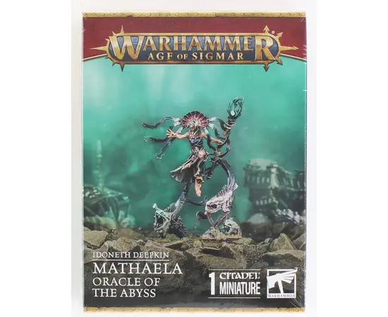 Mathaela stands among the most powerful soul-scryers and sorcerers of the Idoneth Deepkin. Dwelling in the shadowy depths of Ghyran’s abyss, they have only now emerged to defend the sacred soul-reefs of their kin. On the battlefield, Mathaela channels the crushing power of the abyss itself, unleashing devastating magic and driving the creatures of the deep into a savage, bloodthirsty frenzy. This is a hero born of the ocean’s darkest depths—ready to turn the tide of war.