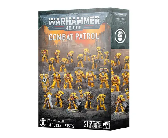 Lead the Sons of Dorn to victory with Combat Patrol: Imperial Fists Rampart Force Torreus. This boxed set puts a Company Heroes squad, five Terminators, five Intercessors, and five Heavy Intercessors warriors whove earned the honor of fighting at their commanders side.