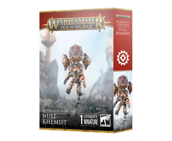 Outfitted in a fully enclosed, aether-powered anti-magic suit, Null-Khemists are designed to counter the growing magical threats sweeping the Mortal Realms. Armed with the devastating null-gas extinguisher, a device that chokes the life from spellcasters and suppresses arcane energy, Null-Khemists are the Admiralty’s ultimate answer to magic—where ever it may come from. A perfect addition for any Kharadron Overlords force looking to bring science to a sorcery fight.This model is supplied unpainted and requires assembly.