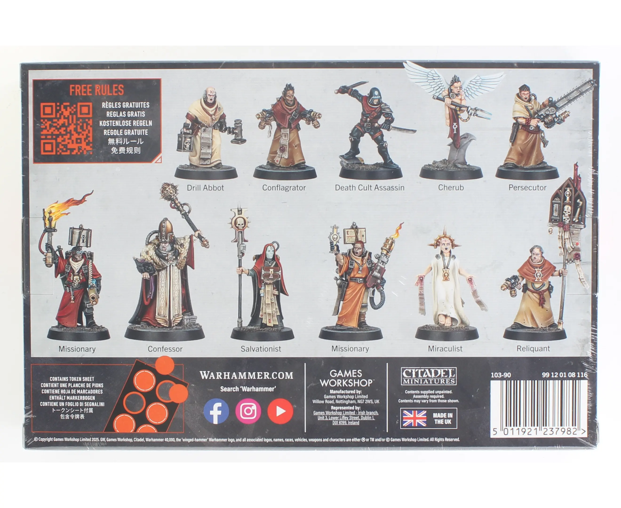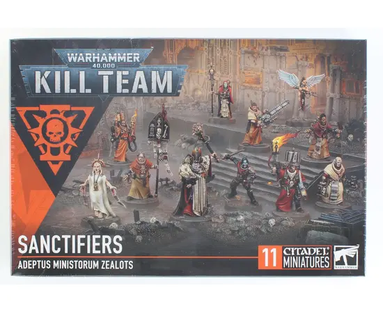 Fanatical devotion meets battlefield precision with the Sanctifiers, a zealous warband that turns unwavering faith into a deadly weapon.This set includes a commanding Sanctifier Confessor, a faithful Sanctifier Cherub, and nine operatives who can be built into a variety of fervent specialists – including the Conflagrator, Death Cult Assassin, Miraculist, Preacher, and Missionaries. Each model is packed with grimdark character and a burning will to purge the unworthy.You’ll also find a set of unique tokens designed specifically for use in your Kill Team games, helping you bring the divine fury of the Sanctifiers to the battlefield with righteous efficiency.These models also have rules available for Warhammer 40k in the Adepta Sororitas and Imperial Agents armies.Models are supplied unpainted and require assembly.