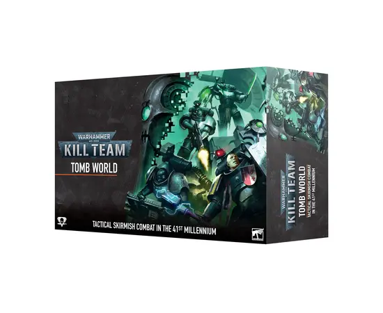 The war shifts away from Volkus next season of Kill Team, as the fight now turns to a Necron Tomb World. Kill Team: Tomb World introduces two brand-new kill teams and a massive haul of thematic terrain. The Deathwatch are the finest hunters of the xenos, each operative handpicked from a different Chapter to fill a specialized role. The set provides enough miniatures to assemble two complete squads, with a wide selection of operatives, sculpted Chapter shoulderpads, and unique heads to customize your force. Opposing them are the Canoptek Circle: a sinister hunting pack made up of two Tomb Crawlers, an Accelerator, a Reanimator, and three Canoptek Circle Warriors, led by the calculating Geomancer.The box also includes a supporting cast of 10 Necron Warriors and three Scarab Swarms as NPOs, alongside 25 detailed terrain pieces to recreate the oppressive halls of the tomb. YouÂ’ll find walls, pillars, sarcophagi, teleport pads, and more, all arranged on a thematic Tomb World game board. The 80-page Tomb World Dossier is packed with lore and rules for both kill teams, mission packs for solo and cooperative play against a Necron Host, plus Adversary Ops where two players face off as the Necron menace awakens around them. Tokens, datacards, event cards, and NPO cards complete the set, offering everything you need to dive into this new chapter of clandestine warfare.Models in this box are supplied unpainted and require assembly.