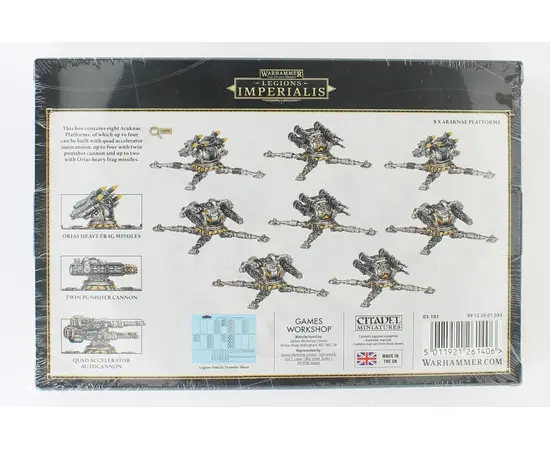 Keep your territory secure with the Araknae Platforms, the ultimate support units for any Legiones Astartes force. This set of eight comes with a wide range of weapon options—including some making their tabletop debut—so you can customise your firepower to suit your strategy: build up to four platforms with quad accelerator autocannons, up to four with twin punisher cannons, and up to two with Orias heavy frag missile batteries.