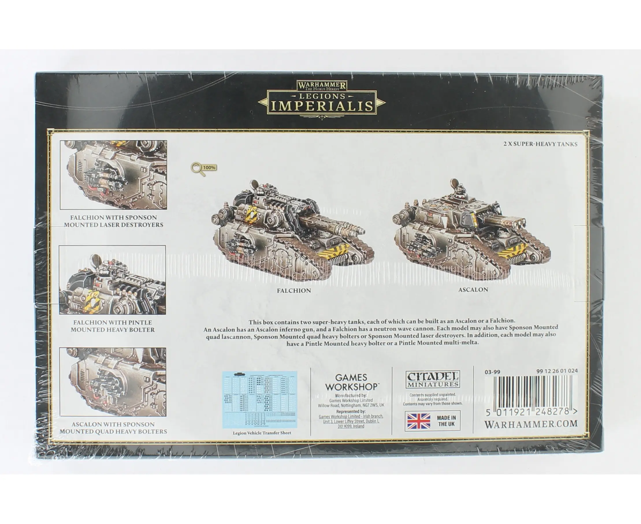 Unleash devastating firepower on the battlefields of Legions Imperialis with the Falchion Super-Heavy Tanks, a pair of elite war machines designed to crush enemy armour and even challenge Titans when deployed in force. You can also build them as the Ascalon variant, equipped with a Titan-grade inferno gun capable of scorching entire quadrants with searing flames. Each set of two plastic tanks also comes with a Legiones Astartes vehicle transfer sheet containing 1,130 transfers, making it easy to customise your tanks and bring maximum destruction to the tabletop.