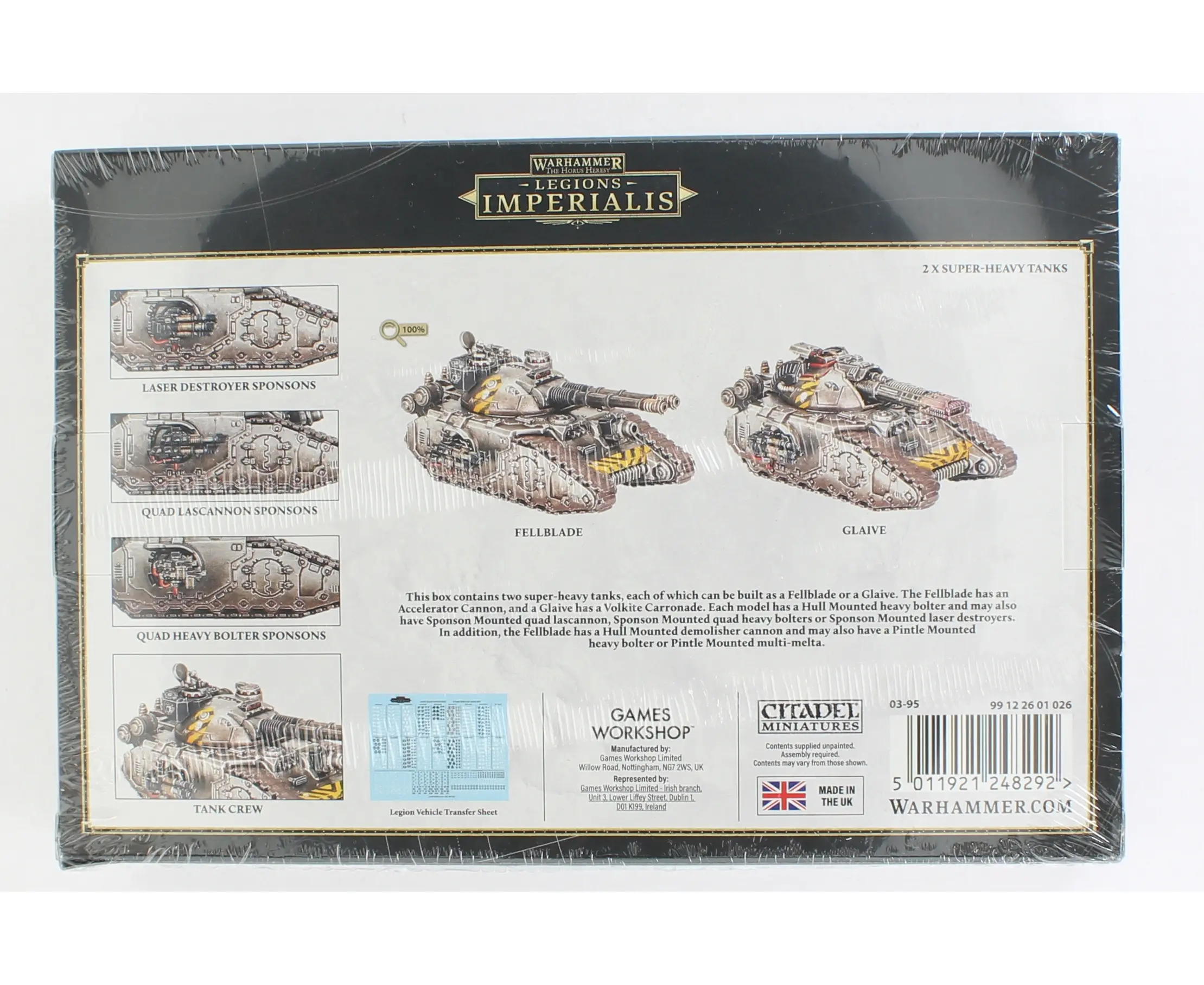 Bring super-heavy firepower to your Legiones Astartes force with the iconic Fellbade, a devastating new tank armed with its massive twin accelerator cannon capable of tearing through enemy vehicles with ease. For even more battlefield versatility, each tank in this set can also be built as a Glaive, fitted with a searing volkite carronade that annihilates infantry formations in a single volley. Each set of two plastic tanks also includes a Legiones Astartes vehicle transfer sheet with 1,130 transfers, letting you customise your war machines for maximum impact on the tabletop.