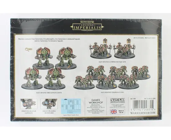 You can never have too much Armor, and this Cadre is ready to prove it. Perfect as a core detachment or elite reinforcements, this set delivers maximum impact with minimal compromise. Inside youÂ’ll find six Saturnine Terminator bases, two Saturnine Command Squad bases, and four Saturnine Dreadnoughts, all backed up by a Legiones Astartes vehicle transfer sheet loaded with an impressive 1,130 decals. A must-have expansion for commanders who believe thereÂ’s no such thing as too much armour.