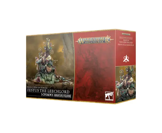 On the battlefield, Festus weakens enemies with toxic brews and parasitic leeches, siphoning their life force to fuel his own grotesque vitality. This richly detailed plastic kit oozes with character and decay, and includes a choice of two heads for Festus, letting you customize this infamous champion of Nurgle.