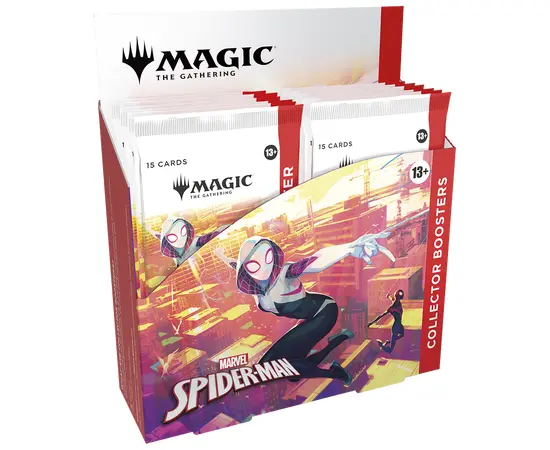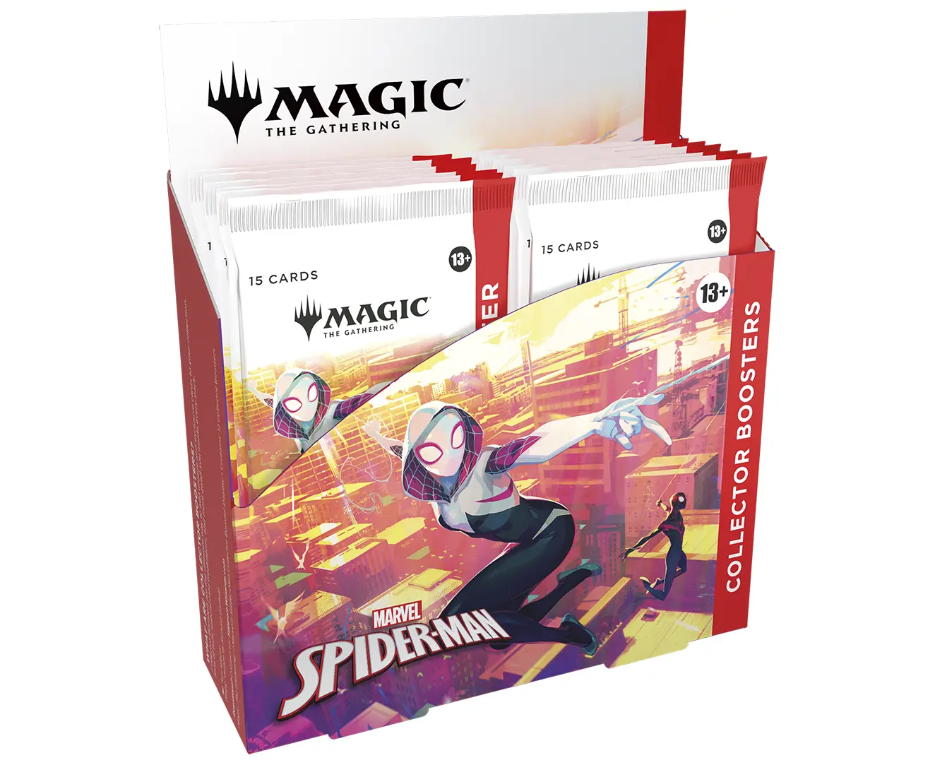 Collector Boosters gather all the coolest cards and foil treatments in one place! Each booster contains Rares and/or Mythics, Traditional Foils, a Borderless basic land, and more. Web-slinging heroes may encounter even more beautiful foils and picture-perfect lands. You could also find the headliner card—the most collectible pull of all!
