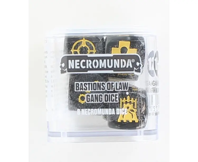 Complete your Necromunda collection with this specialized dice set, featuring 8 pearlised black dice with yellow ink pips in the standard Necromunda configuration: