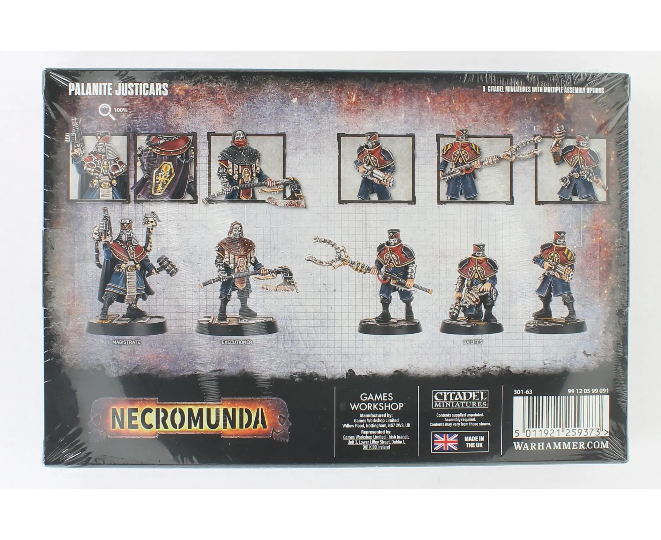 When justice must be delivered without compromise, law-abiding gangs can petition for the support of this formidable plastic Palanite Justicar Delegation. This kit includes a Magistrate, an Executioner, and three Bailiffs, all packed with customization options. Multiple head and weapon choices let you outfit your delegation with shotguns, heavy clubs, and fulmen-pattern man catchers, making this an ideal addition for players looking to enforce order on Necromunda with authority and style.