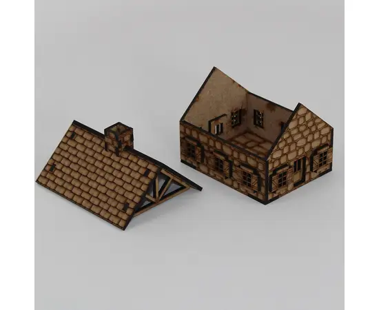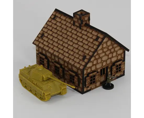 This French farmhouse is designed to add the flavor of western Europe to your 15mm wargames. Designed to be the same size as Gale Force 9's Tanks templates and with a removable roof / playable interior that holds up to 3 Flames of War medium infantry bases, these buildings add more dimension and realistic line of sight to your games.