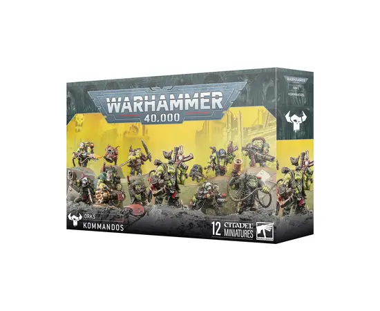 Kommandos are known as the sneaky using cunning tricks to turn the tides of battle. Armed with ramshackle but brutally effective weapons, Kommandos will make a great addition to your Waaagh. This kit was previously part of the Kill Team range, it is now repackaged for Warhammer 40,000. Inside youÂ’ll find 12 miniatures and an Ork transfer sheet packed with 438 decals.Models in this kit are supplied unpainted and require assembly.