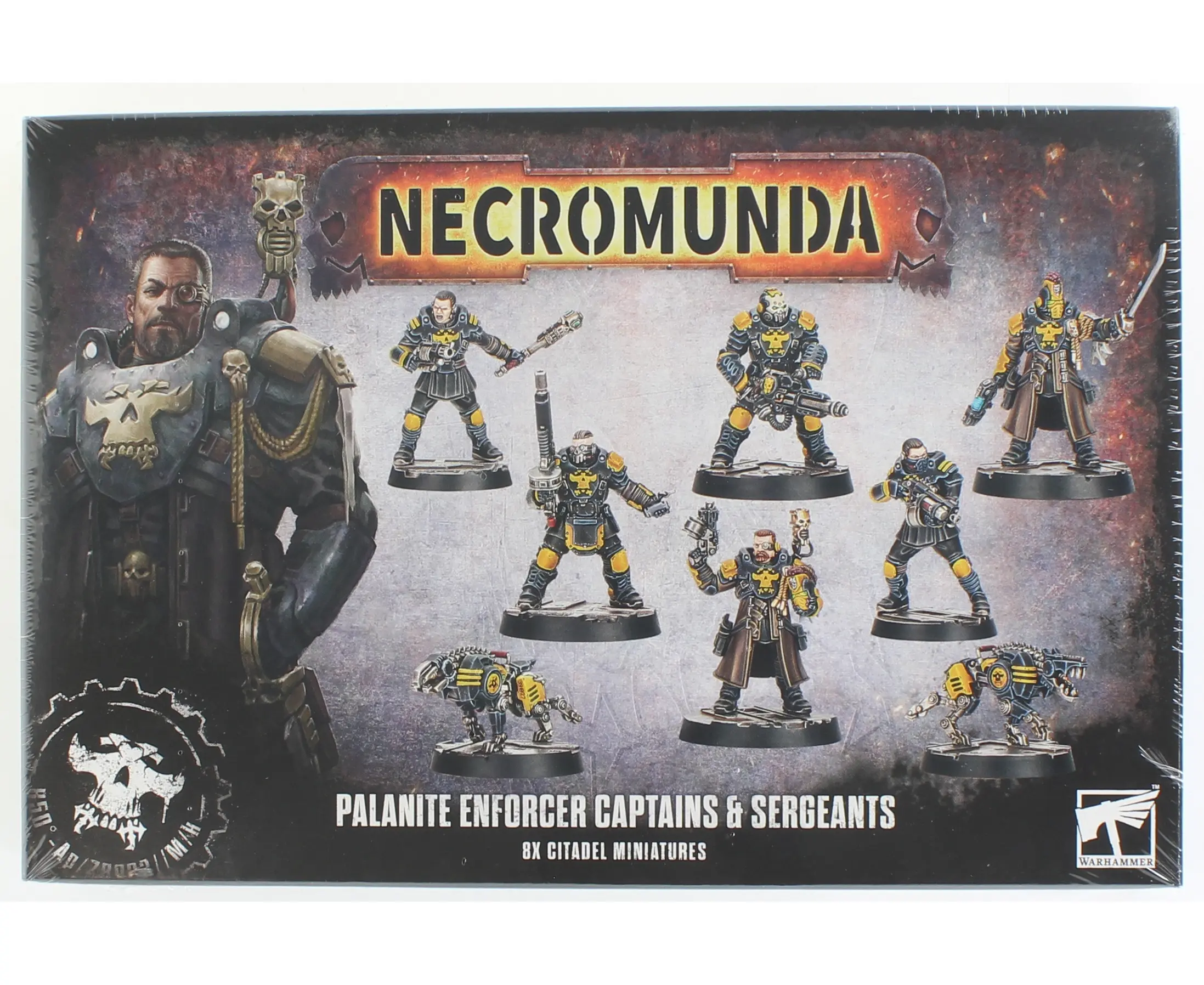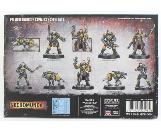 The Palanite Enforcers are hardened veterans of Lord Helmawr's justice, seasoned by years of brutal service in the depths of Hive Primus. Trained in crowd suppression and battlefield control, they'll use any means necessary to keep the hive's industry running. This set arms you with the leaders and specialists needed to command your Enforcer patrols.