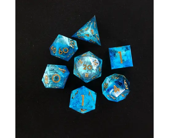 Resin Sharp Edge Clear Blue w/Gold Set of 7 Dice