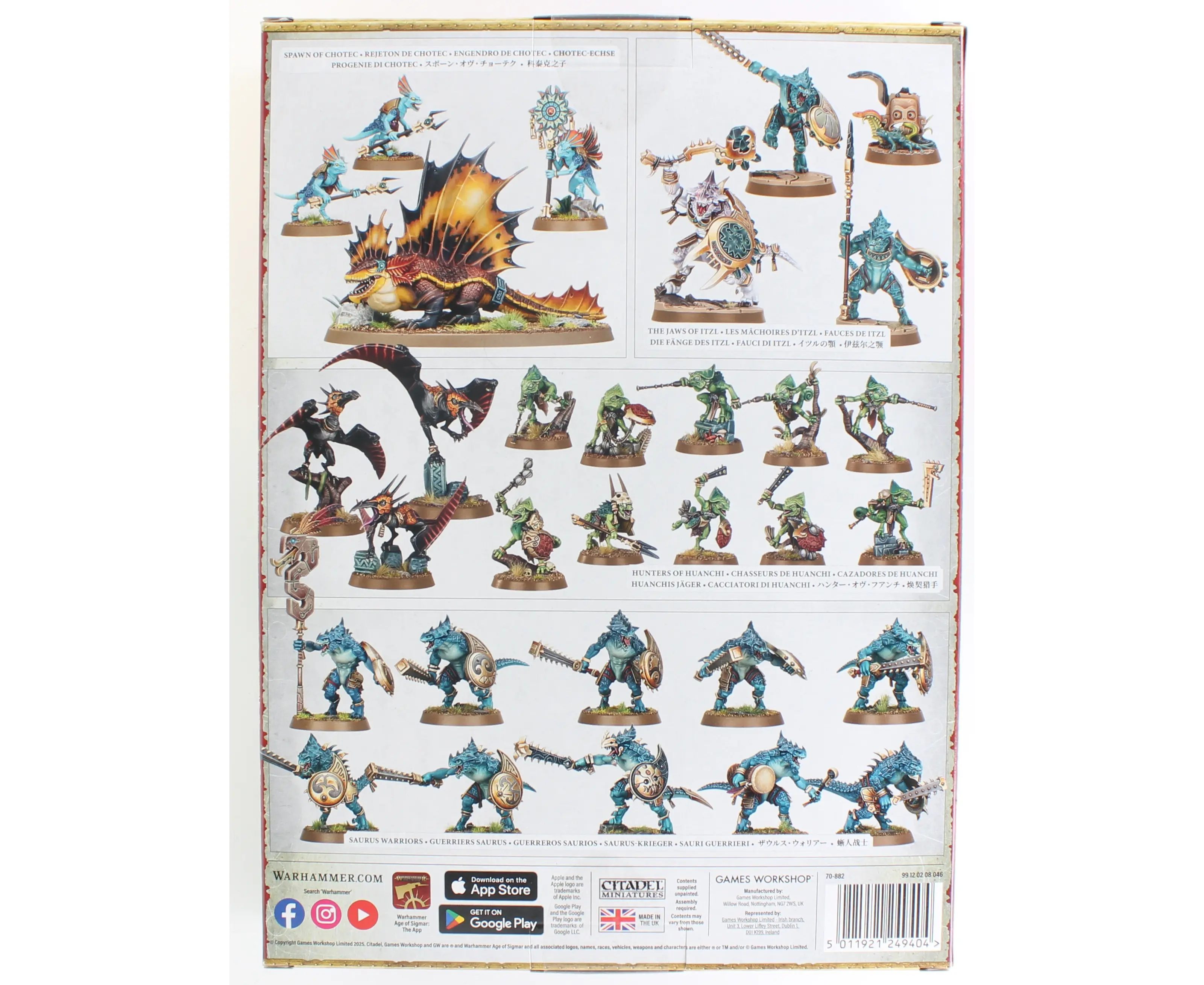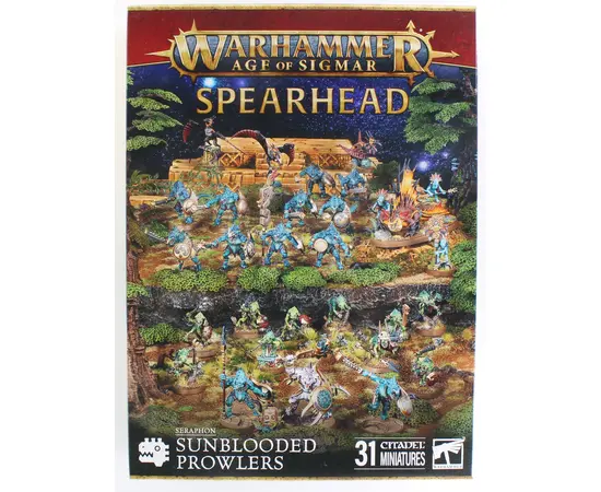 A rare and sacred astral alignment, revered by the Old Ones, has summoned the Sunblooded Prowlers—a versatile and deadly Seraphon hunting party. Blending cunning stealth with raw primal force, this Spearhead formation is led by the formidable Sunblood Pack.At its heart is a core of 10 Saurus Warriors, backed by two units of five Hunters of Huanchi who strike from the shadows. Soaring above are three Terrawings, providing aerial support and swift strikes, while a ferocious Spawn of Chotec rains down searing globs of flaming acid to soften up their prey.This is a Spearhead force designed for adaptability, aggression, and celestial precision.These models are supplied unpainted and require assembly.