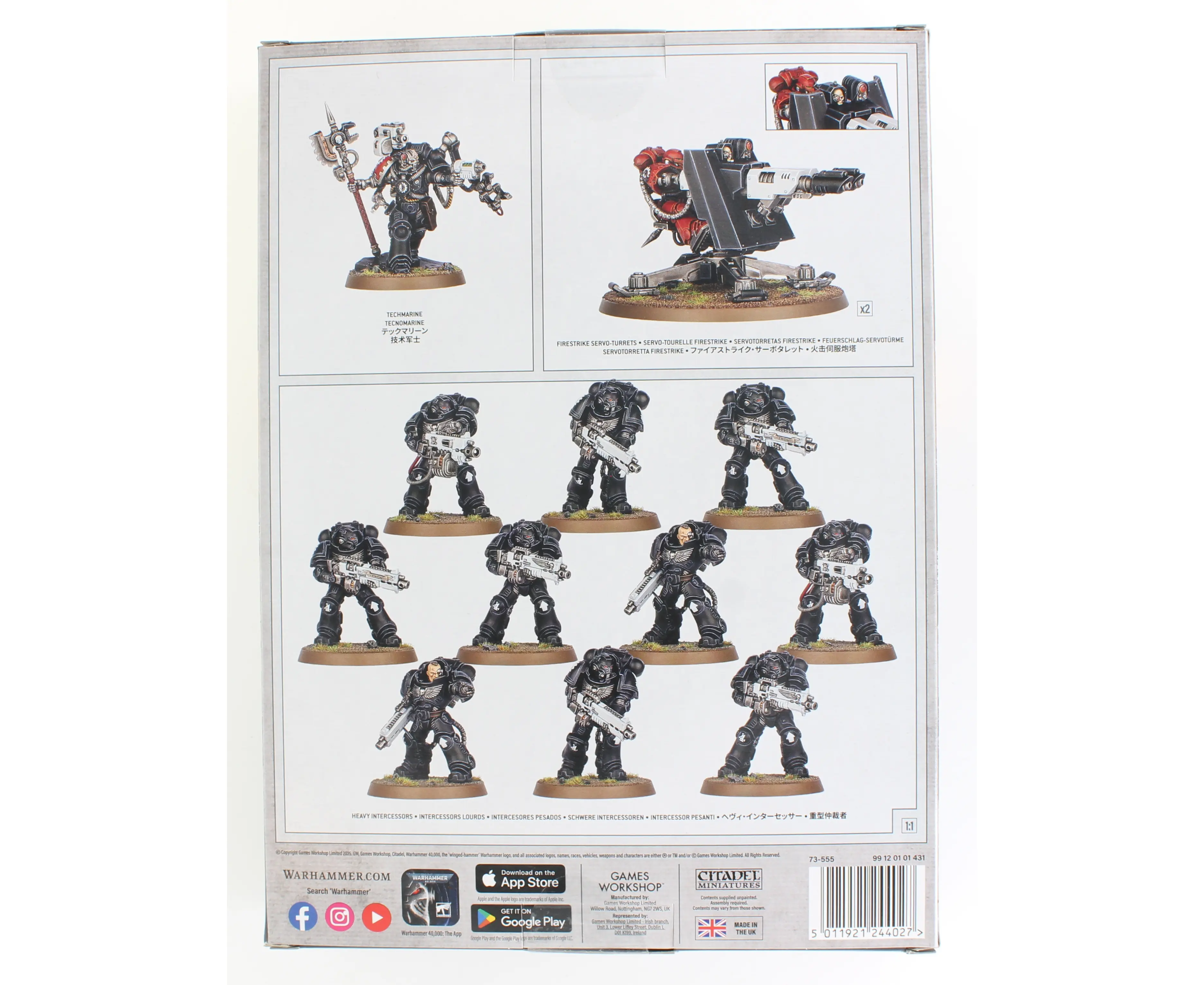 Inside, you’ll find 10 Heavy Intercessors, two Firestrike servo-turrets, and a Techmarine ready to keep your war machines running at peak efficiency.