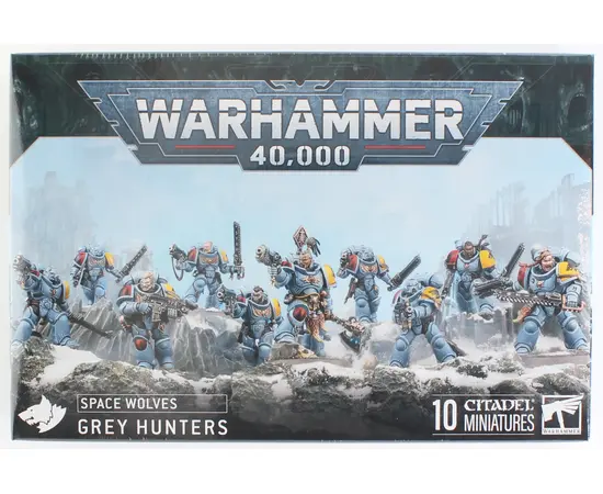 Tempered by battle and hardened by experience, former Blood Claws become Grey Hunters – the steadfast core of any Space Wolves force. These seasoned warriors combine discipline and adaptability with the ferocity of true predators, holding ground with unshakable resolve and unleashing devastating counterattacks the moment their foes close in. This multi-part plastic kit builds 10 Grey Hunters, complete with a wide range of customization options. Choose from a variety of helmeted and unhelmeted heads, and equip your Pack Leader with multiple weapon choices to suit your preferred style of warfare.These models are supplied unpainted and require assembly.