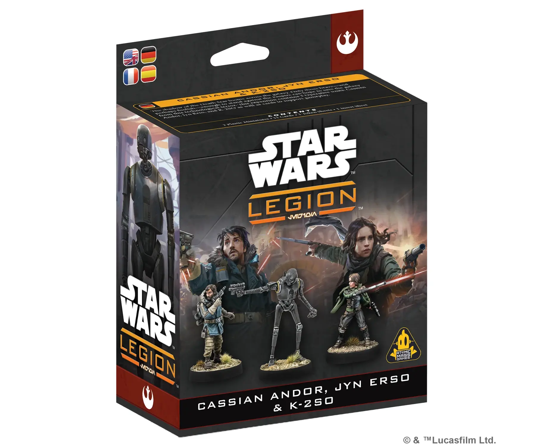 - LEAD THE REBELLION: Strengthen your Rebel Alliance forces with Cassian Andor, Jyn Erso, and K-2SO, three iconic heroes ready to take on covert missions in Star Wars: Legion.