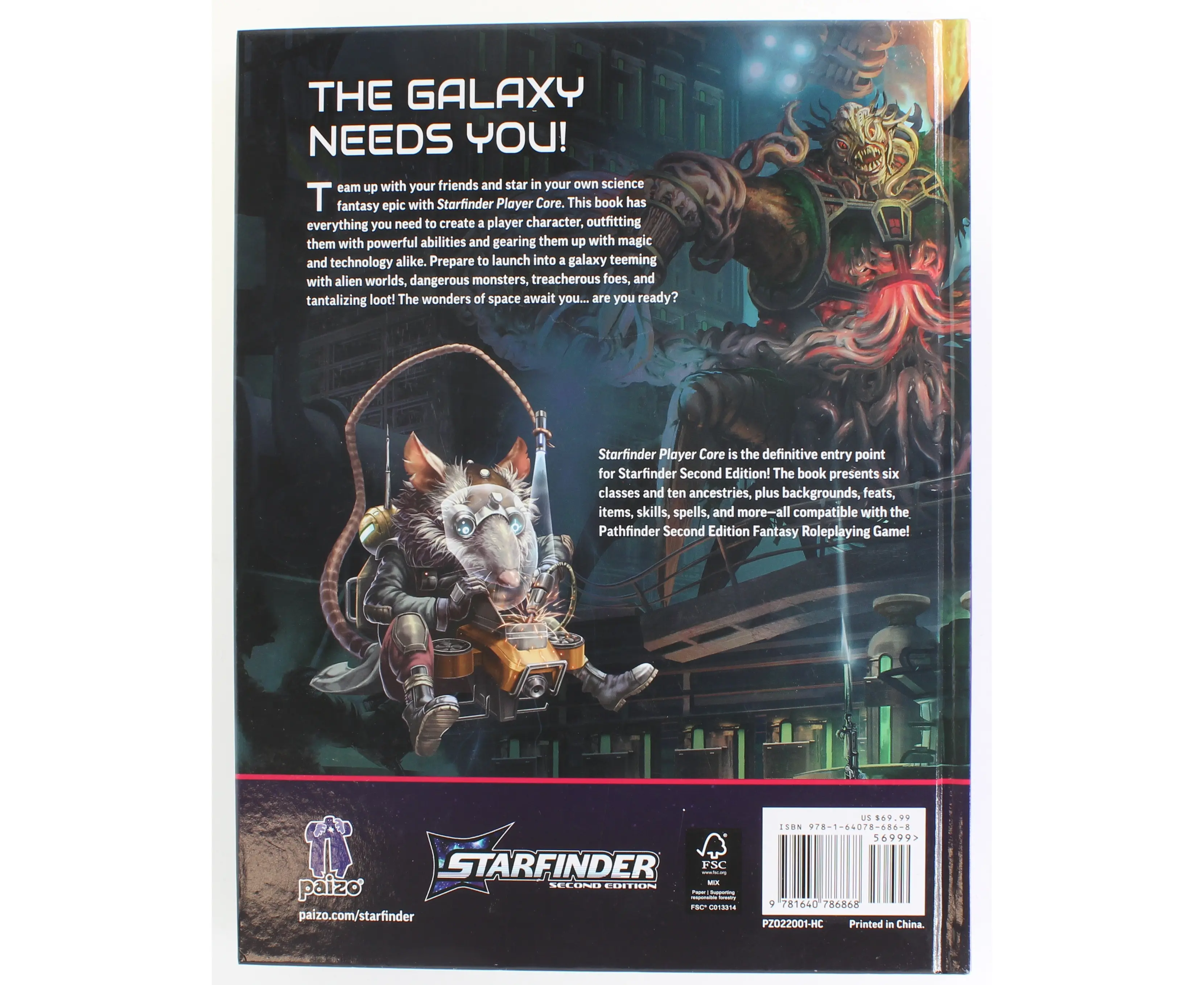 The Starfinder Player Core is the definitive entry point for Starfinder Second Edition, with everything a player needs to learn how to play the game! Choose from 10 ancestries, six character classes, and hundreds of feats and spells to create unique characters ready to take on a ruthless galaxy awash with magic and opportunity. Starfinder Player Core brings the Starfinder RPG into its new edition and is now 100% compatible with the acclaimed Second Edition of the hit Pathfinder Roleplaying Game.