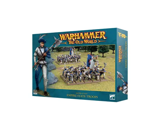 The first unit consists of a formidable block of 30 State Troops, highly trained soldiers skilled in wielding halberds, spears, or the classic sword-and-shield combination. These options provide extra striking power, the ability to fight in two ranks, or enhanced armor, respectively. The set includes enough components to assemble up to three command groups and comes with a 290-piece transfer sheet. This kit contains 291 plastic components, and 30x Citadel 25mm Square Bases.This set also includes 1x Empire of Man Infantry Transfer Sheet, containing 290 high-quality waterslide transfers for you to use to decorate your models.These models are supplied unpainted and require assembly.