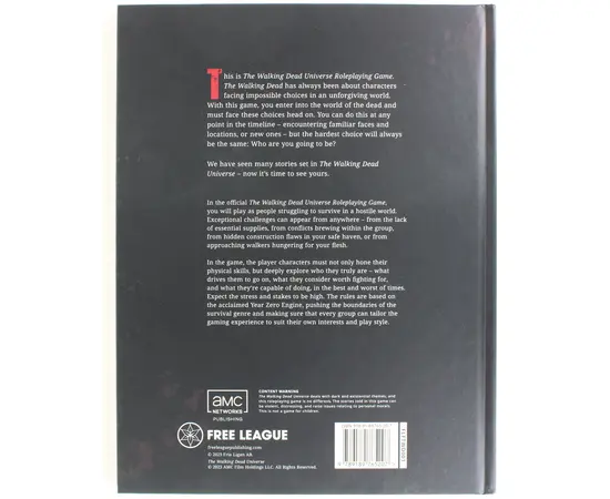 In the official The Walking Dead Universe Roleplaying Game, you will play as people struggling to survive in a hostile world. Exceptional challenges can appear from anywhere from the lack of essential supplies, from conflicts brewing within the group, from hidden construction flaws in your safe haven, or from approaching walkers hungering for your flesh.
