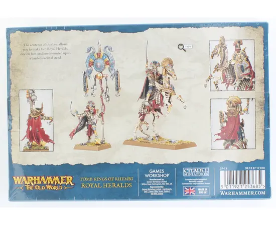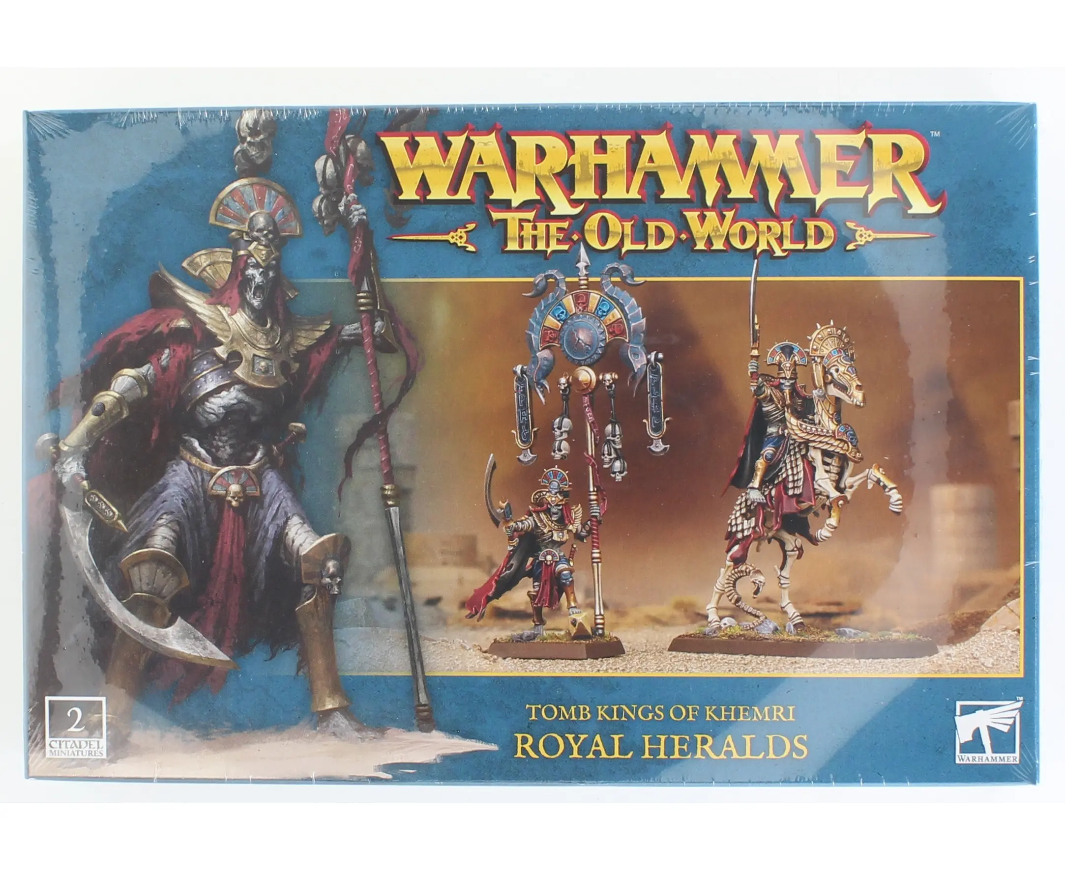 Lead your legions with the Tomb Prince and Royal Herald! This versatile plastic kit lets you build two Khemri heroes, one on foot and one on skeletal horseback. YouÂ’ll also get a wealth of customization options, including capes, collars, ornate chest decorations and two distinct head options for both the Tomb Prince and the Royal Herald. Packed with detail and flexibility, this kit is the perfect way to crown your Tomb Kings of Khemri force with heroic might.