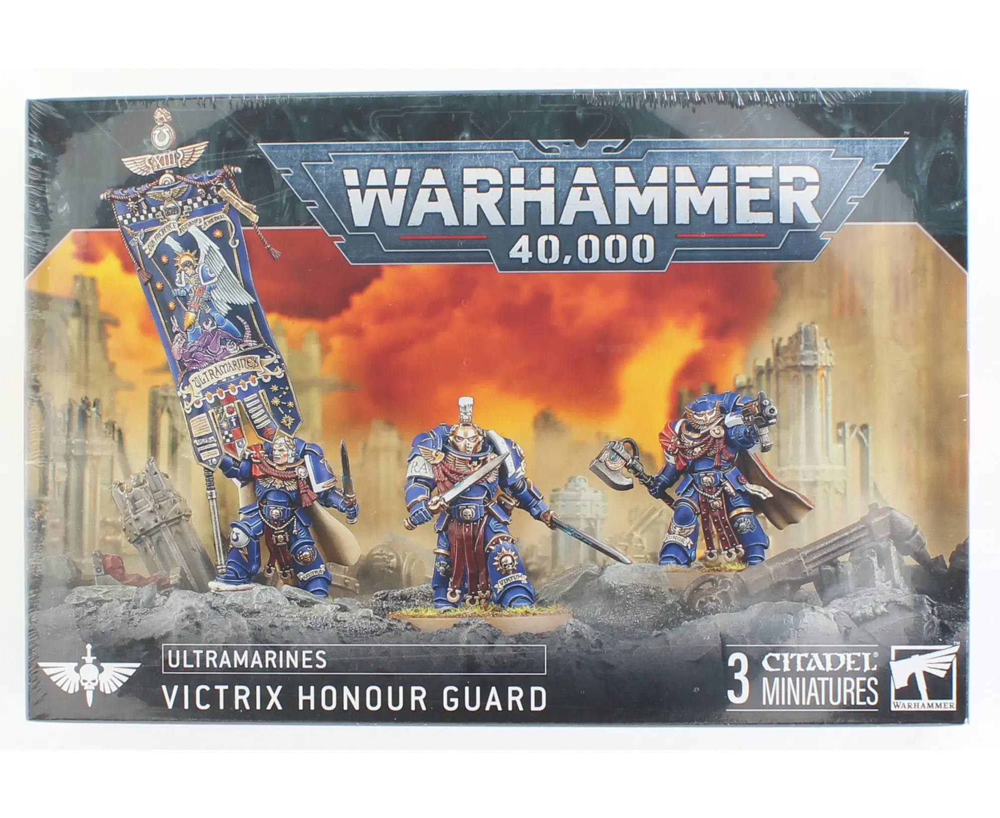 This multipart plastic kit builds three Victrix Guard, each bristling with interchangeable heads, arms, and greaves for plenty of customization. You can also assemble one as a Chapter Champion, wielding the fabled blades of honour, and another as a Chapter Ancient, proudly bearing the Banner of Macragge into battle.