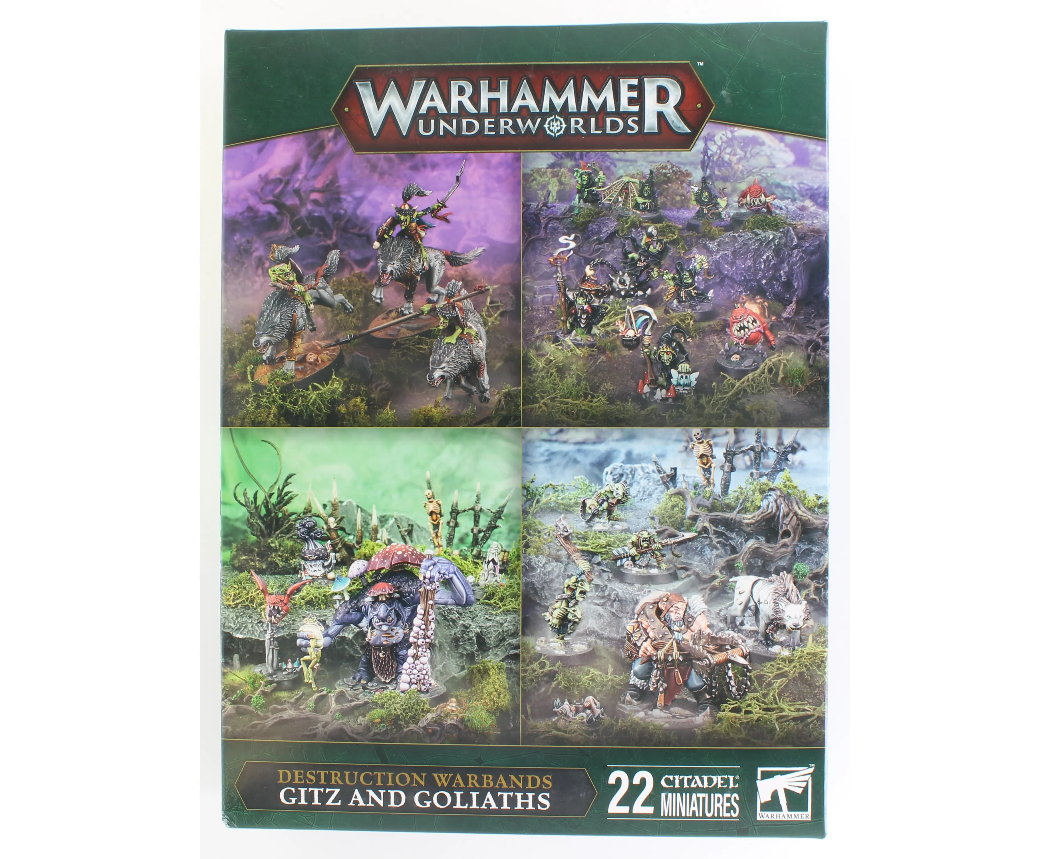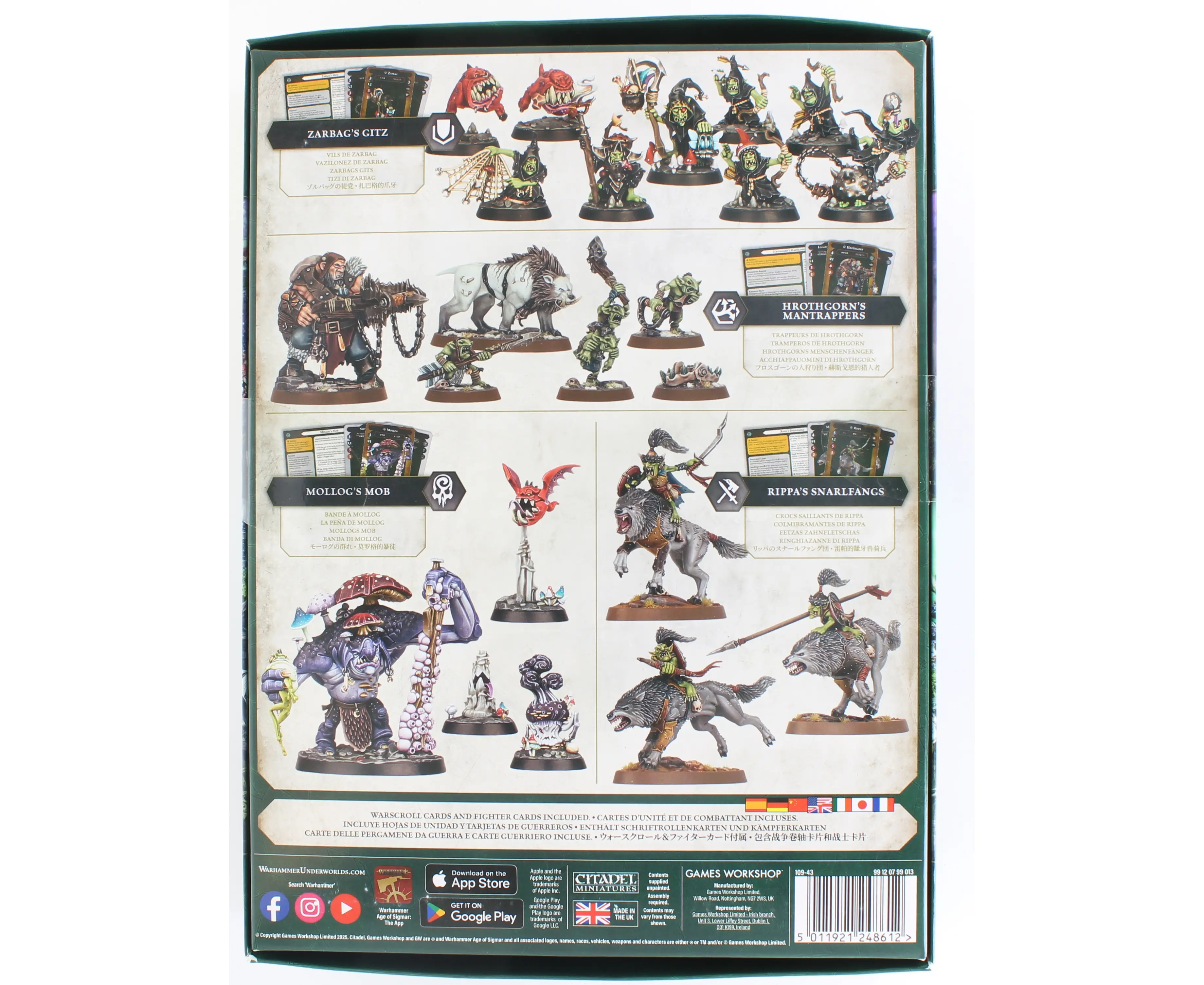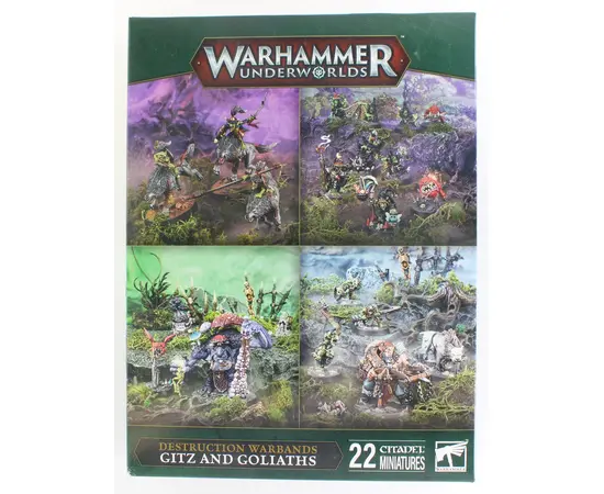 Crush, chomp, and cause chaos with Gitz and Goliaths! This brutal box set throws together a wild mix of ogors, troggoths, and grots – all hungry for glory. Inside you’ll find four warbands: Hrothgorn’s Mantrappers, Rippa’s Snarlfangs, Mollog’s Mob, and Zarbag’s Gitz – each ready to smash through enemies and scrap for dominance in Warhammer Underworlds.