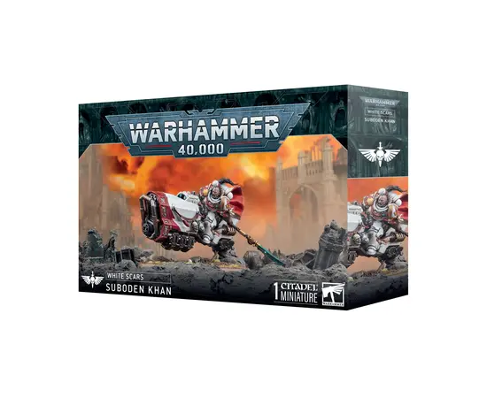 Riding atop his grav bike Thunder, Suboden Khan spearheads the veteran Outriders of the White Scars First Brotherhood, delivering blisteringly fast charges worthy of his Chogorian lineage. Renowned for cutting down elusive prey and running down foes who dare flee the White Scars lightning-swift assaults. This dynamic miniature includes your choice of a helmeted or unhelmeted head, letting you tailor the Khans look to your army.