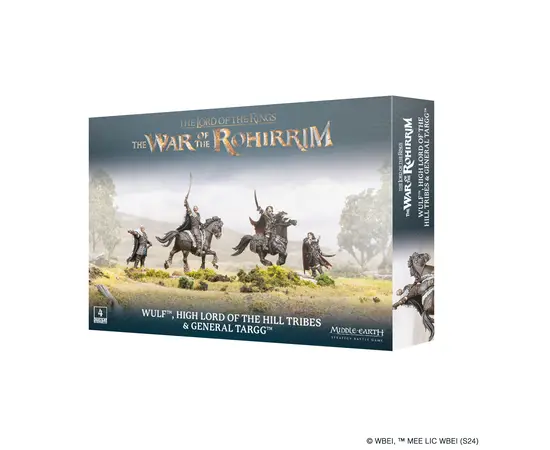 Lead your Hill Tribes into batlle with this duo featured from the War of the Rohirrim. Wulf, High Lord of the Hill Tribes, and General Targg are included together in this plastic kit, featuring both mounted and unmounted versions of each. This kit contains 50 plastic components, 2x Citadel 40mm Round Hex Hole Bases, and 2x Citadel 25mm Round Bases to build four models. These miniatures are unassembled and unpainted – we recommend using Citadel Plastic Glue and Citadel Colour paints.These models are supplied unpainted and require assembly.