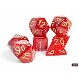 Chessex Mega Dice Set of 7 - Glitter Ruby with Gold